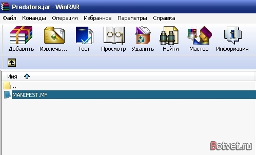 3. Открываем любым текстовым редактором файл под названием - MANIFEST.MF