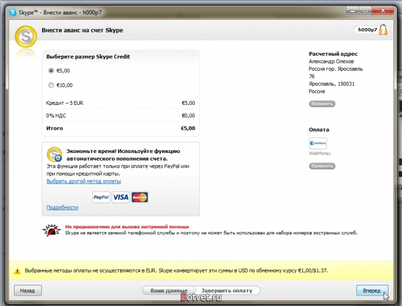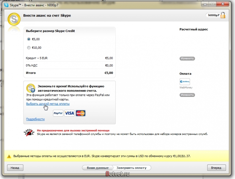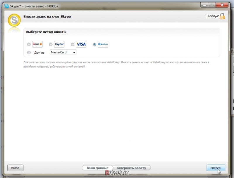 Из этой статьи вы узнаете Как пополнить счёт в скайпе (Skype) через WebMoney?. Максимально подробные инструкции и ответы на ваши вопросы ждут вас на сайте botvet.ru