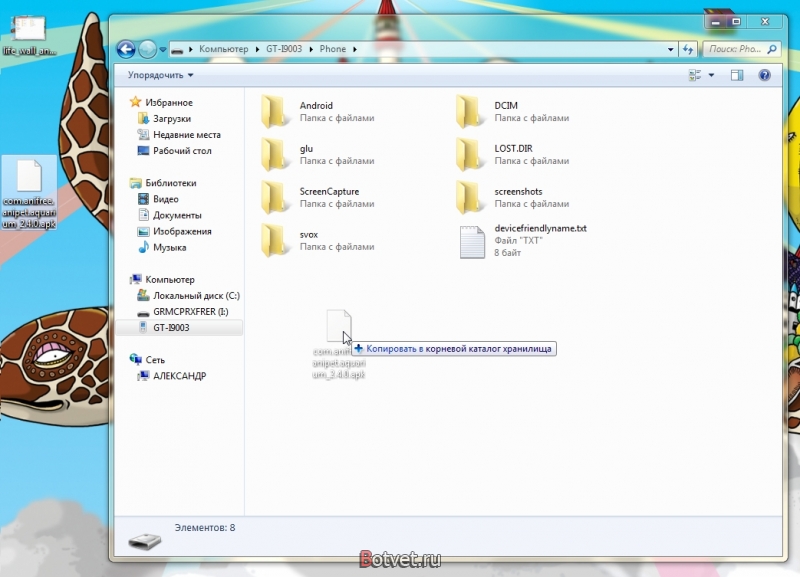 5. Скопируйте в "корень" (или любую папку ваши живые обои в формате - "APK"