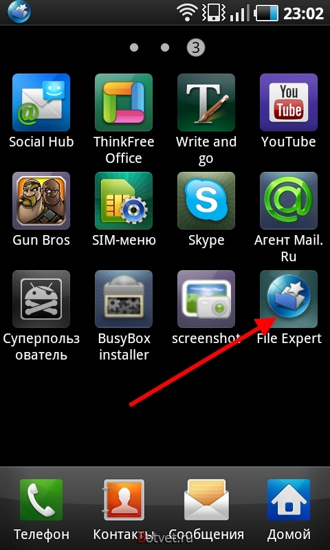 1. Прежде всего вы должны установить любой файловый менеджер из Андроид Маркета (скачать его можно бесплатно, например - File Expert)