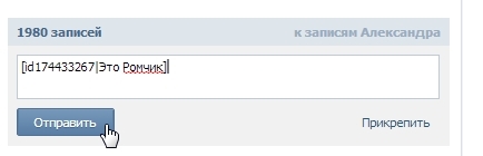 3. Далее зайдите на страничку того, кому вы хотите послать ссылку и напишите следующее: [id|текст, который будет отображаться в ссылке] и нажмите отправить.