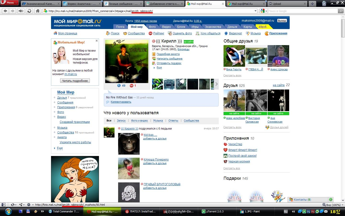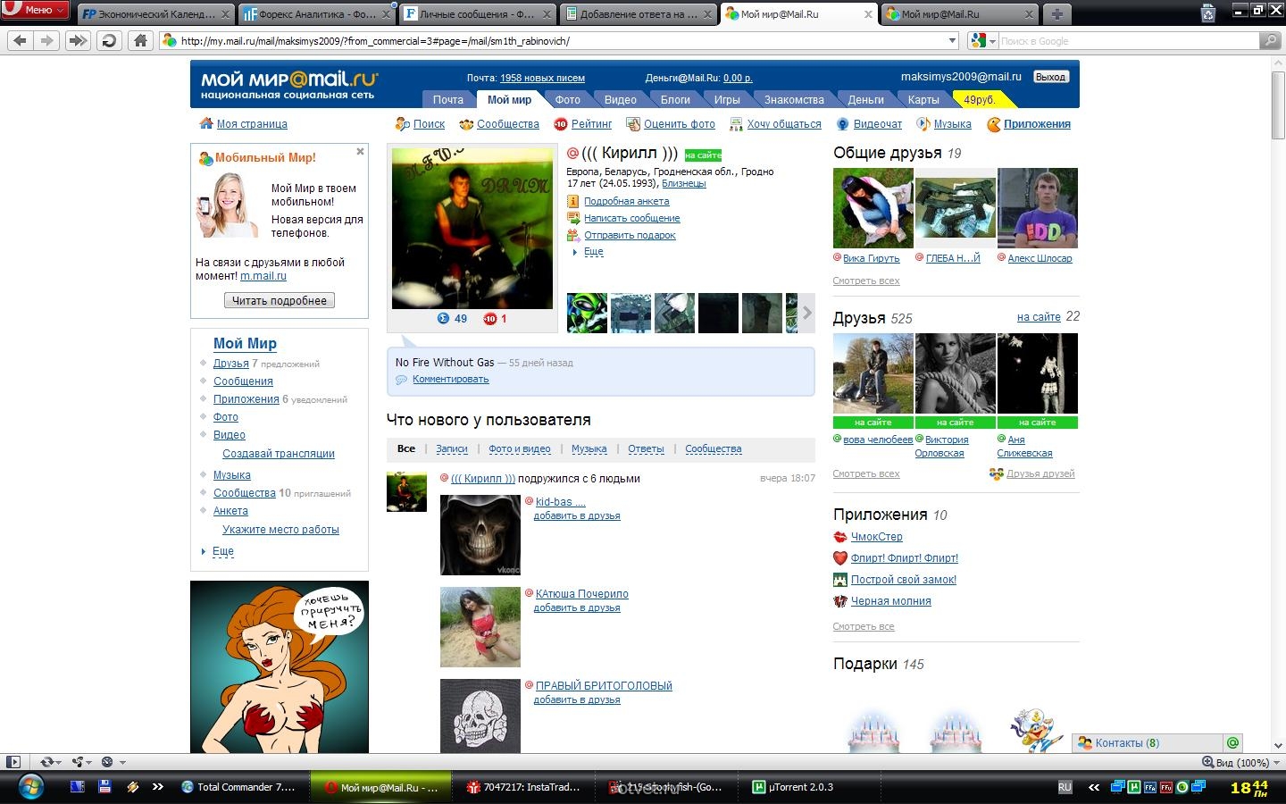 Для того чтобы узнать имя почты (маил адрес) любого другого человека на mail.ru надо. Зайти в его мир. Проста нажать на его фотографию. У вас должно открыться такое окно.